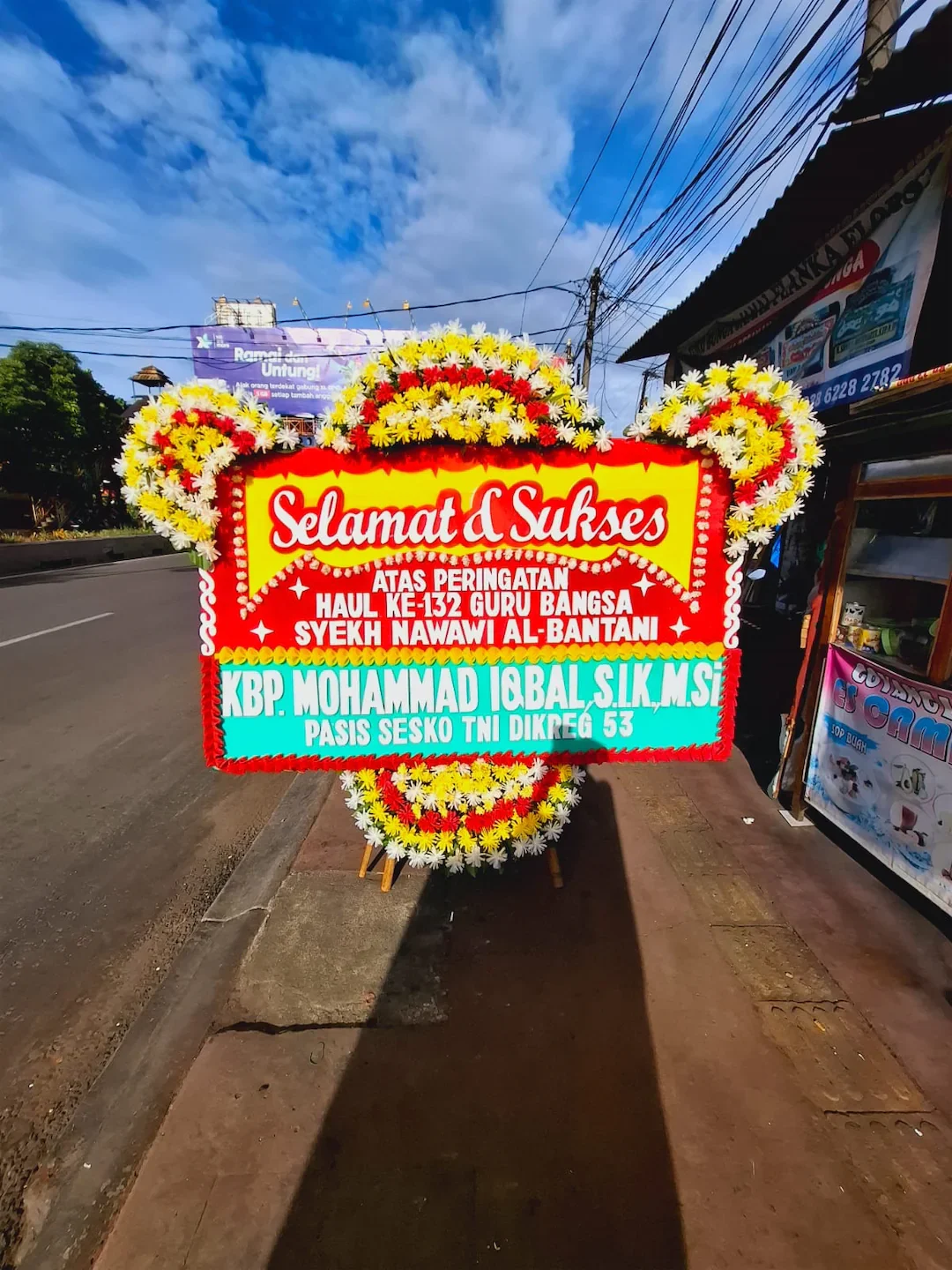 Dirangkai dengan bunga segar berkualitas seperti mawar, krisan, lily, dan hiasan daun tropis, setiap papan dihiasi dengan kombinasi warna ceria yang mencerminkan kegembiraan dan semangat positif. Tulisan ucapan dibuat jelas dan elegan, bisa disesuaikan dengan nama pengirim atau instansi.